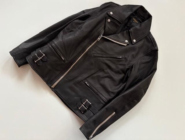 国内の天然牛革を使用し、オリジナルの鞣しを施したダブルのライダースジャケットは