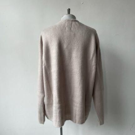 毛足が長く、繊維表面を滑らかに加工した糸を使用し、起毛加工(ブラッシュ加工)を施しており、本来のMOHAIRセーターの質感を保った仕上がりになっております。