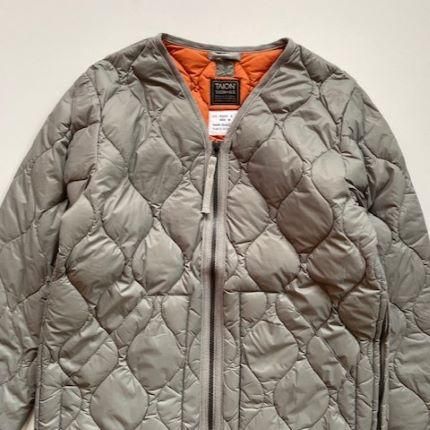 TAION / 【UNISEX】ミリタリー VネックWジップ ダウンジャケット-ソフトシェル(TAION-101ALSZML-1) ¥9,900 tax included "SOFT SHELL(柔らかい生地)を使用した、新しいミリタリーダウン" SOFT SHELL(柔らかい生地)を使用した、ミリタリーVネックWジップダウンジャケットです。 従来のMILITARY LINEよりも軽くて柔らかく着用感がとてもいいです。 MILITARY LINEの特徴となる両脇スリットファスナーは、可動域が広がることで動きやすくなり、ボトムのポケットに手も入れやすく、重ね着を楽しんでいただける仕様となっています。 【商品スペック】 ・柔らかく張りのある高密度ナイロン生地を使用しています。 ・800FLPの上質なダウンを使用しています。 ・前たてと両脇には、YKKファスナーを使用しています。 ・両脇には、ファスナースリットが付いています。 ・左右腰には、パッチポケットが付いています。 ・収納袋が付いています。コンパクトに収納ができ持ち運びに便利です。外出や旅行に最適です。 ・ご家庭での洗濯も可能です。 ※男女兼用サイズです。 女性の方:XS〜Sサイズをお勧めします。ルーズに着用希望の方はMサイズをお勧めします。