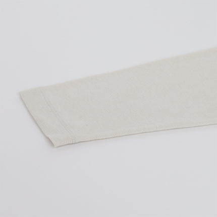肌触りの優れたマイクロ抗ピルアクリルを用いたストレッチジャージー。湿気や汗を熱に変えて保温する三菱レイヨン(株)のプレミアウォーム®︎を使用。温かさは保ちつつも余分な湿気は逃すので、さらっとした快適さを保つことができます。表面を起毛することで肌触りも柔らかくAWシーズンには最適です。