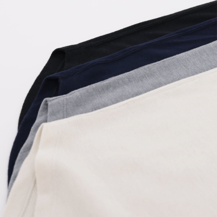 インナーとしての着用を考えたコンパクトなシルエットのTシャツ。襟は共地使用のバインダー仕立てで裾は緩くラウンドさせています。素材の良さを堪能するためにデザインはあくまでもミニマルに仕上げています。AWシーズンのベーシックインナーとして重宝します。