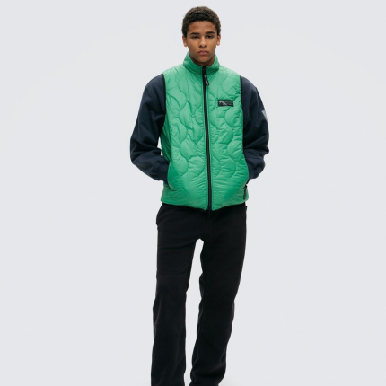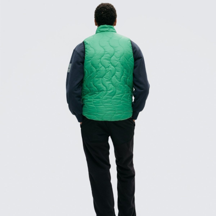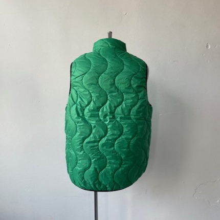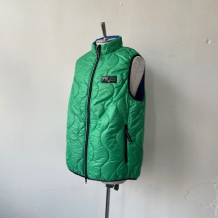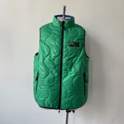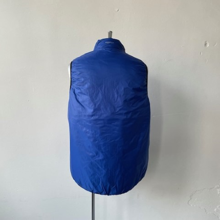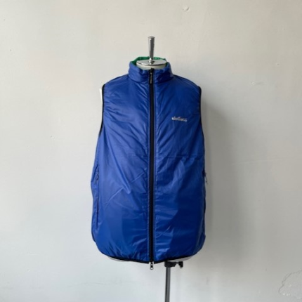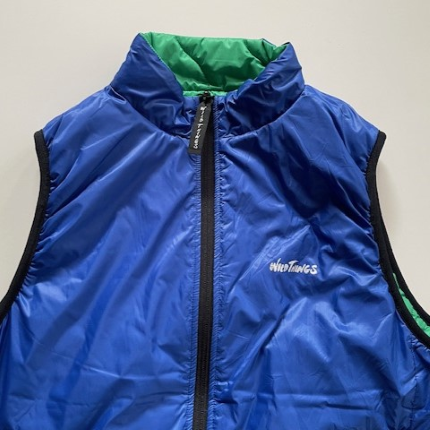 WILDTHINGS / REVERSIBLE BELAY VEST ¥24,200 tax included 表側は往年のWILD THINGSで人気を集めた波キルトに WILD CATの旧ロゴ復刻ネームでレトロアウトドアな雰囲気。裏側はBEL AY J ACK E Tベースでステッチを表に出さず、ロゴもリフレクタープリントでソリッドな雰囲気。表裏両側にPERTE X QUANTUMを使用。中綿にプリマロフトを使用したリバーシブルの中綿ベスト。