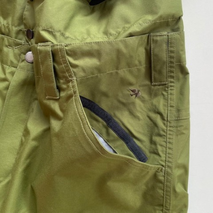 機能性を求めてスポーティーになりがちなハイウエスト&サスペンダーパンツに、ベルトループやカーゴポケットなどのデザインを加えてカジュアル感を表現した、超軽量ワンプライモデル。