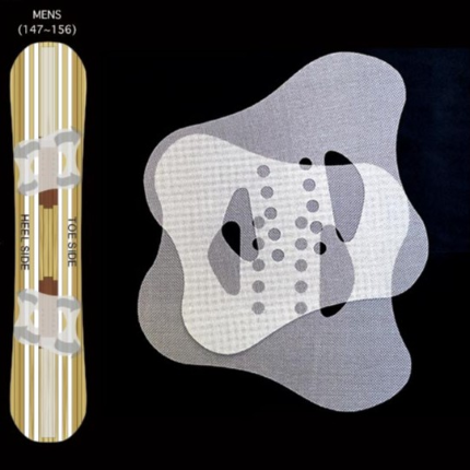 足下にはフレックスを阻害することなく衝撃耐性を向上させるビンディングベースプレート形状の強化プレートを採用。トーションも使いやすく繊細なボードコントロールを可能にします。(ダックスタンスポジションに配置していいるためトゥーサイドとヒールサイドが決められています。)