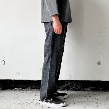 また上が深くゆとりあるワイドストレートのシルエットです。