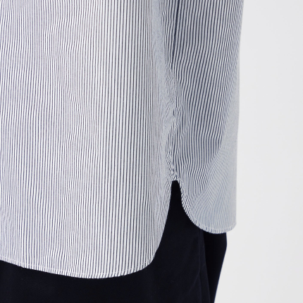 ・ポリエステルの外側をオーガニックコットンで覆った三層構造のカバーリングコアヤーンを使用し、高密度に織り上げたブロードクロスを製作。コットンの肌触りに、軽量且つ耐久性があり乾きやすいという機能性をプラスしたnanamicaオリジナルのハイブリッド素材。