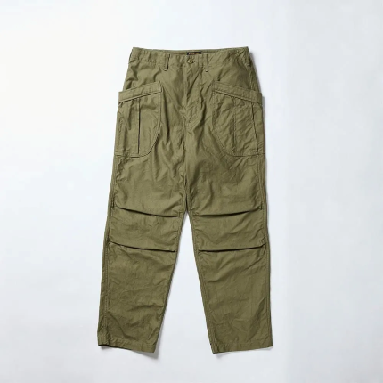 フロントに大きなマチ付きポケットを配した定番のファティーグトラウザー。