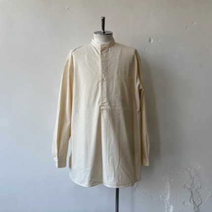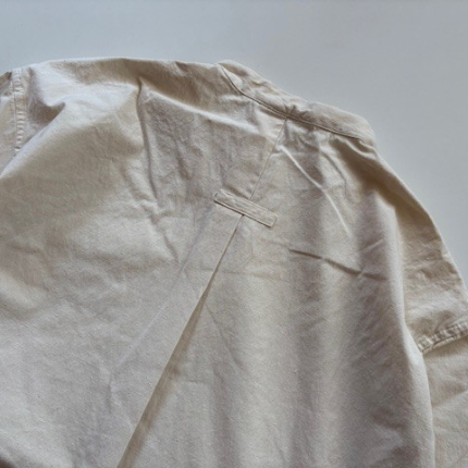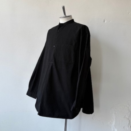 タックを利かせ、ゆったりと長めの着丈で仕上げたプルオーバーシャツ。