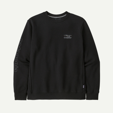 パタゴニア初期の製品ラベルからヒントを得たグラフィックをあしらったクルースウェット。