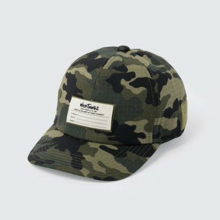 WILDTHINGS / MILITARY CAP ¥5,500 tax included コットンリップストップを使用したキャップ。 フロントと左横にベルクロが付いており、ネームの位置を変えたり、取り外しが可能。後ろのサイズ調整にもベルクロを採用。