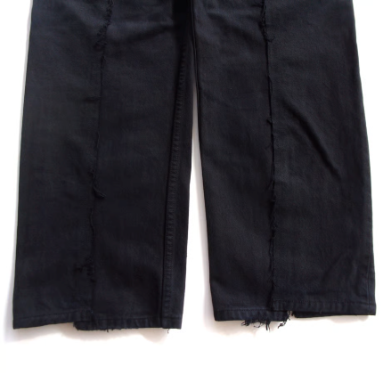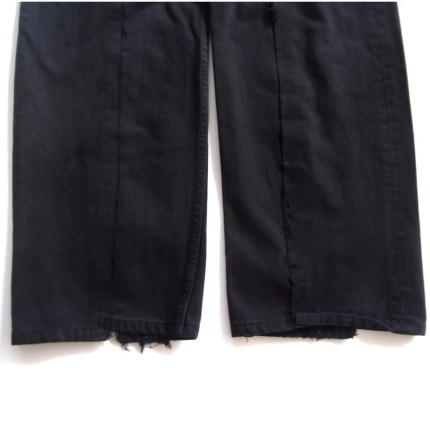 2本のデニムパンツを繋ぎ合わせた、独特なワイドシルエット。