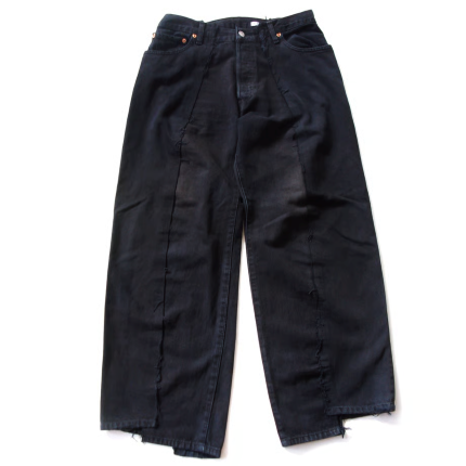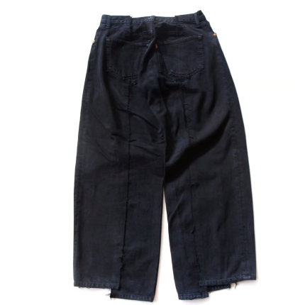 OLD PARK / BAGGY JEANS ¥30,800 tax included ヴィンテージリメイクデザインが定評のあるOLDPARKの定番とも言えるバギージーンズ。 2本のデニムパンツを繋ぎ合わせた、独特なワイドシルエット。 USED Levisを使用し、USEDの持つ雰囲気とカッティングの凝ったデザインを楽しんでいただけます。 ※ユーズドボディを使用していますので、リメイク品特有のダメージがあることなどをご理解いただける方へご購入いただいております。OLD PARKの品物は1点ものとなっております。予めご理解の上、お買い求めください。
