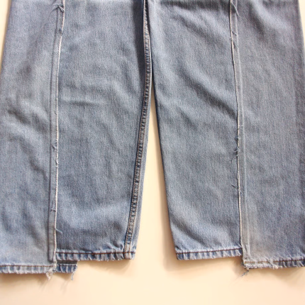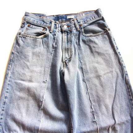 OLD PARK / BAGGY JEANS ¥30,800 tax included ヴィンテージリメイクデザインが定評のあるOLDPARKの定番とも言えるバギージーンズ。 2本のデニムパンツを繋ぎ合わせた、独特なワイドシルエット。 USED Levisを使用し、USEDの持つ雰囲気とカッティングの凝ったデザインを楽しんでいただけます。 ※ユーズドボディを使用していますので、リメイク品特有のダメージがあることなどをご理解いただける方へご購入いただいております。OLD PARKの品物は1点ものとなっております。予めご理解の上、お買い求めください。