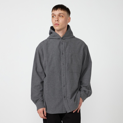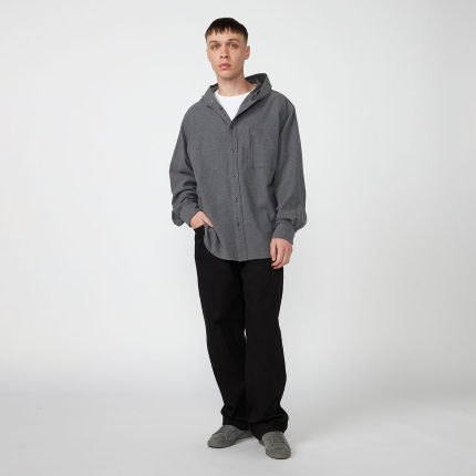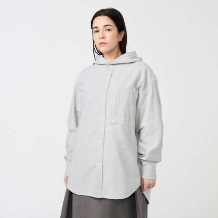 ・オーガニックコットンフランネル素材を使用したフーデッドシャツ