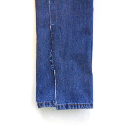 デニムパンツをサイドで繋ぎ合わせた、サイドスリットの綺麗なシルエット。(OLDPARKの517)