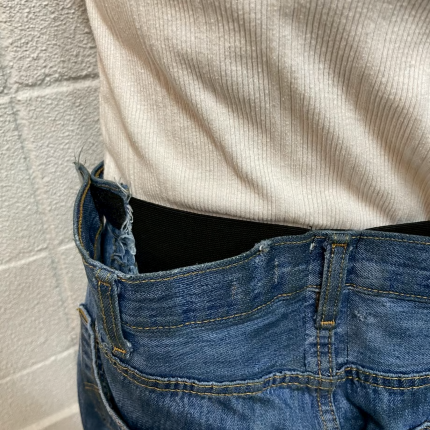 ウェスト後ろ部分に、画像のようにゴムが入っておりウェストの調整が可能です。