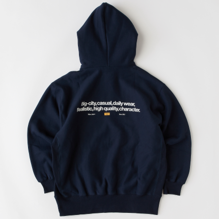 胸のシンプルなロゴ刺繍とバックプリントが印象的なスウェットパーカー。オリジナルで編み立てたT/C裏毛起毛素材は、程よい肉感で着心地の良さが特徴的。アメリカンオーセンティックを感じさせる縫製、生地方向やサイドパネルなど細部にまでこだわったアイテム。あらゆるコーディネートに欠かせないオールマイティーな1枚。ポケットのブランドネームも程よいアクセントに。
