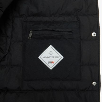 表地にははっ水加工を施した、軽くナチュラルな風合いのリサイクルタスランナイロンを使用。マットな質感の生地に、パッカリングを効かせてスポーティ感を抑え、都市生活に馴染むデザイン感です。中わたは、遠赤外線効果で自然なあたたかさをもたらすクリーンダウン光電子を封入。裏地にGORE-TEX WINDSTOPPER 2層構造を使用し、風の侵入を軽減しています。バッフル量を抑えて軽く薄手に仕上げつつ、防風性、保温性に優れ、衣服内を適温に保ちます。