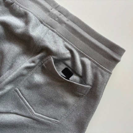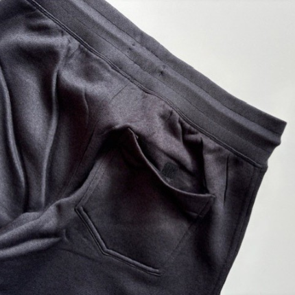 伸縮性に優れたウエストはリブ仕様で、ドローコードで調節可能。