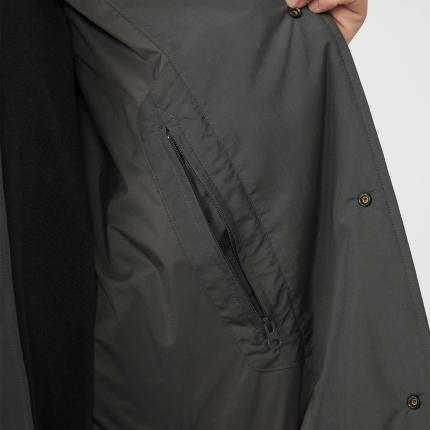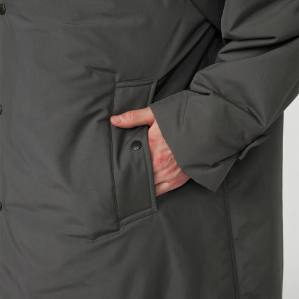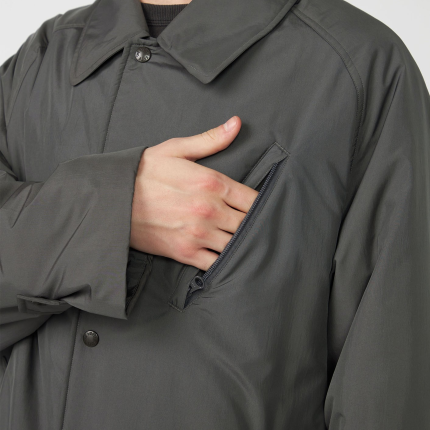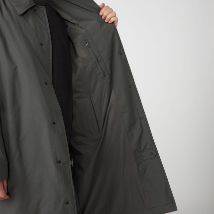 ・クラシックなステンカラーコートのデザインにグリズリーピークジャケットのポケットディテールをミックス