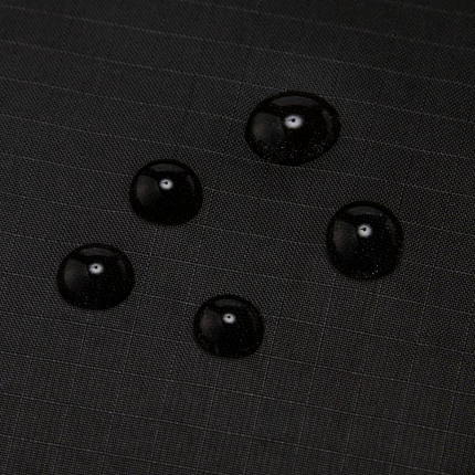 環境に配慮したリサイクルダウンを中わたの一部に使用。表地は強度がある40デニールのリップストップナイロンにはっ水加工を施し、パックに干渉する肩部分はナイロン素材で補強しています。