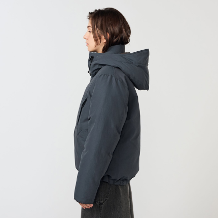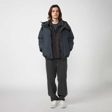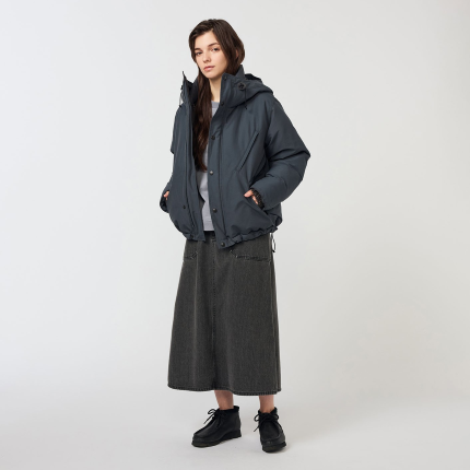 THE NORTH FACE PURPLE LABEL / Double Peak Short Down Parka ¥79,200 tax included ・オーガニックコットンとリサイクルナイロンのグログランクロスを使用したショートダウンパーカ ・クラシックアウトドアスタイルの定番素材グログランクロスを採用 ・はっ水加工を施すことで機能性をプラス ・裏地はリサイクルポリエステルリップストップを採用 ・中わたの光電子® ダウンは人の体からでている遠赤外線(体温)を輻射して、体に戻すことで自然な温かさをキープ ・70年代にリリースされたTHE NORTH FACEのダウンジャケットをベースに、シルエットやディテールを現代的にアップデート ・袖口はインナーカフ仕様 ・THE NORTH FACEロゴドットボタン使用 ・程よいショート丈のバランスと、身幅にボリュームをもたせたオーバーサイズシルエット (メンズモデル/身長:179cm 着用サイズ:M) T-SHIRT:Field Long Sleeve Tee VEST:PERTEX UNLIMITED Mountain Wind Vest BOTTOM:Denim Wide Tapered Field Pants (ウィメンズモデル/身長:162cm 着用サイズ:WS) BOTTOM:Denim Field Skirt
