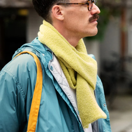 繊細で滑らかな肌ざわりが特徴の「ベビーアルパカ」の毛を使用したショートマフラーです。やさしく首元を包み込み、ストレスなく着用できるうえ、しっかりと保温してくれます。ループ状に特殊加工されたブークレ糸は、多くの空気を含む構造のため、軽量でありながら高い保温性を発揮。ホールに通すだけで簡単に着脱でき、使わないときはコンパクトに畳んでバッグに収納できる、携帯性にも優れたアイテムです。