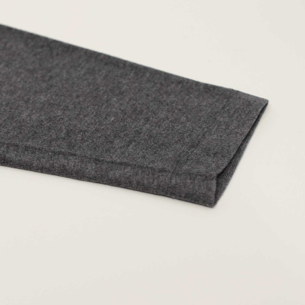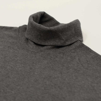 三菱レイヨン(株)の機能素材プレミアウォーム®︎を用いたタートルネックのロングスリーブTシャツ。肌触りの優れたマイクロ抗ピルアクリルを用いたストレッチジャージーは湿気や汗を熱に変えて保温する機能を持ち、温かさは保ちつつも余分な湿気は逃すので、サラッとした快適さが保たれます。また表面を起毛することで柔らかな肌触りに仕上げています。インナー用途がメインではありますが、タイトフィットにはしていないので一枚でも着用可能。数シーズンマイナーチェンジを繰り返しながらも継続展開されているCURLY&Co.の定番アイテム。今シーズンは袖口幅を若干狭くしています。
